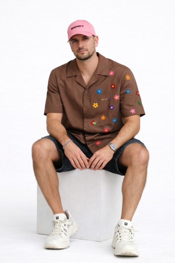 Koszula z kolekcji limitowanej, zaprojektowana i wyprodukowana przez BREND POLSKA. Model wyróżnia się minimalistyczną formą przełamaną subtelnym, artystycznym akcentem – kolorowymi aplikacjami kwiatów, które nadają jej unikalnego charakteru.